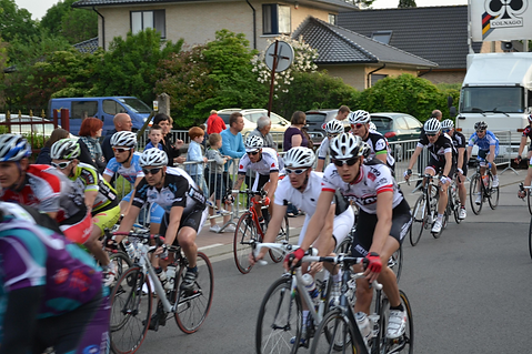 Eerst een rondje achter de wagen, iedereen ging zeer behoedzaam door de bochten waardoor je achteraan het peleton bijna voet aan grond moest zetten omdat het zo traag ging, na anderhalf rondje zat ik ongeveer halverwege het peleton, ik had al gezien dat Jerry en Egwin vooraan zaten, Morris zat in mijn buurt maar Peter zat helemaal achteraan.